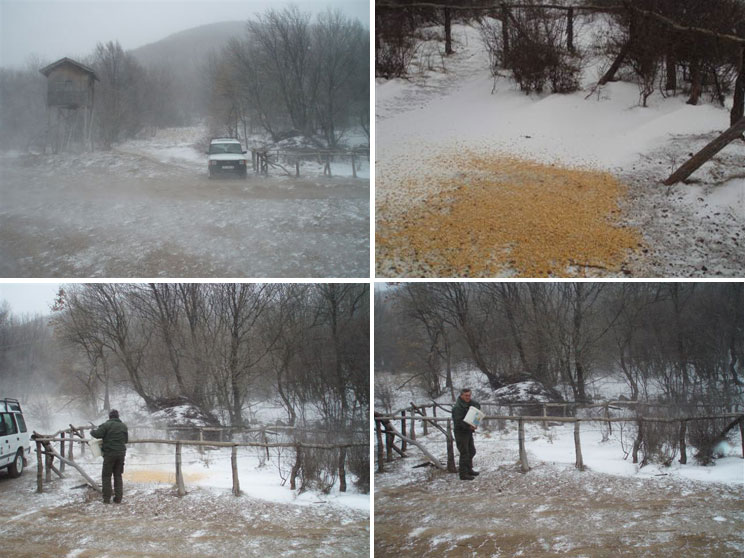 Danas snimljena hranilica na Šćurku i onoga dana kada je postavljena. Obratite pozornost što je divljač uradila od podloge. |