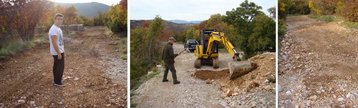 Vlastitim snagama započeli smo nasipavanja dijela puta za gornje lovište na Šternini koji je odnesla bujična voda. |